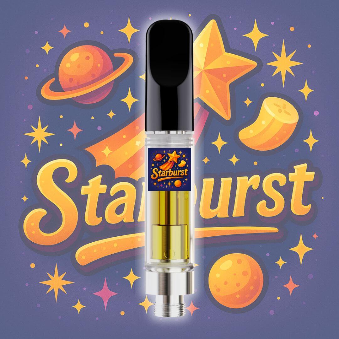 Starburst 510 vape cartridge bursts with mixed fruit flavor and smooth vapor. Sweet, uplifting, and made with pure BC cannabis extract.