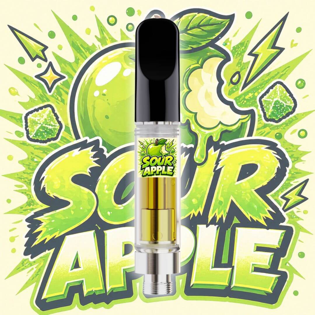 Sour Apple is a hybrid vape cartridge known for its crisp, tangy profile blending tart green apple with a touch of sweet candy-like finish.